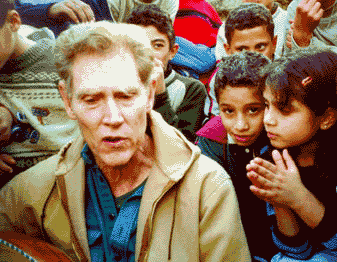 At the bridge over the river Jordan, at the border into the West Bank, we met a Palestinian family waiting for admission to the next bus... We sang a few bars of familiar popular songs... They said, seeing the little bag of Lays potato chips I was holding for my pre-breakfast snack: "Now we are very careful not to buy anything from America... nothing nothing nothing American... See our two-year-old boy... He's only two and he already says he wants to die shooting Israeli soldiers in Jerusalem... look at what is becoming of our children!" Then we sang some more Arabic songs... When in doubt, sing... It works every time... Big smiles break out...